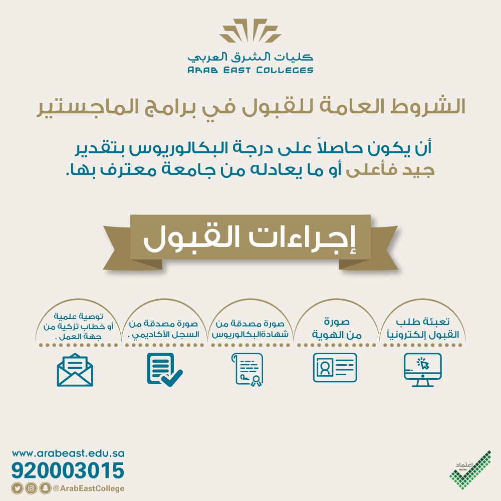 كليات الشرق العربي على تويتر أهلا وسهلا بك إليك مرفق شروط القبول وساعات البرنامج
