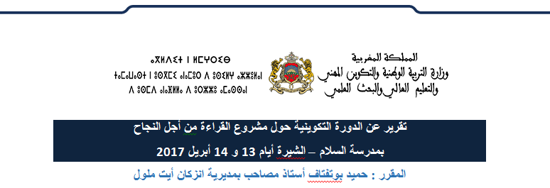 تقرير عن الدورة التكوينية حول مشروع القراءة من أجل النجاح بمدرسة السلام الشيرة أيام 13 و 14 أبريل 2017